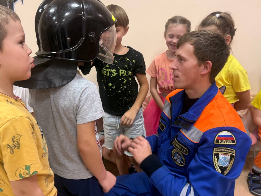 Ребят познакомили со средствами индивидуальной защиты и специальным оборудованием. Конечно каждый желающий попробовал себя в роли Спасателя, примеряв на себя экипировку.