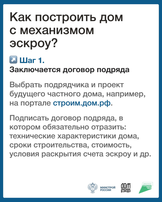 Информируем о возможности строительства индивидуальных жилых домов по договорам строительного подряда с использованием счетов эскроу.