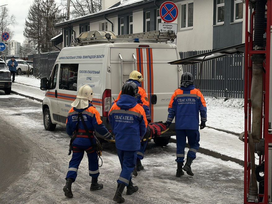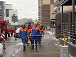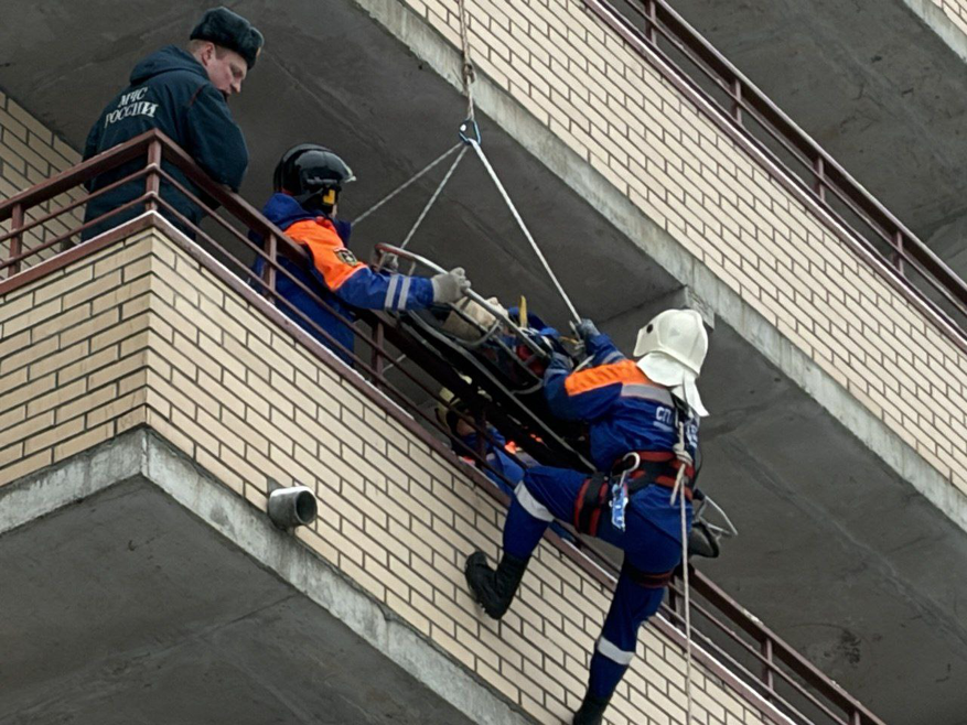 Перед спасателями поисково-спасательного отряда г. Шлиссельбург стояли задачи по эвакуации условных пострадавших разными способами: первого пострадавшего эвакуировали с применением альпинистского снаряжения в акье, а второго - на жёстких носилках по лестнице.