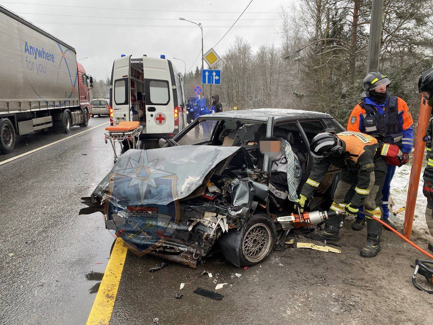 Спасатели поисково-спасательного отряда г. Тосно провели деблокирование пострадавшего и передали сотрудникам скорой помощи. Также спасателями было проведено отключение АКБ.