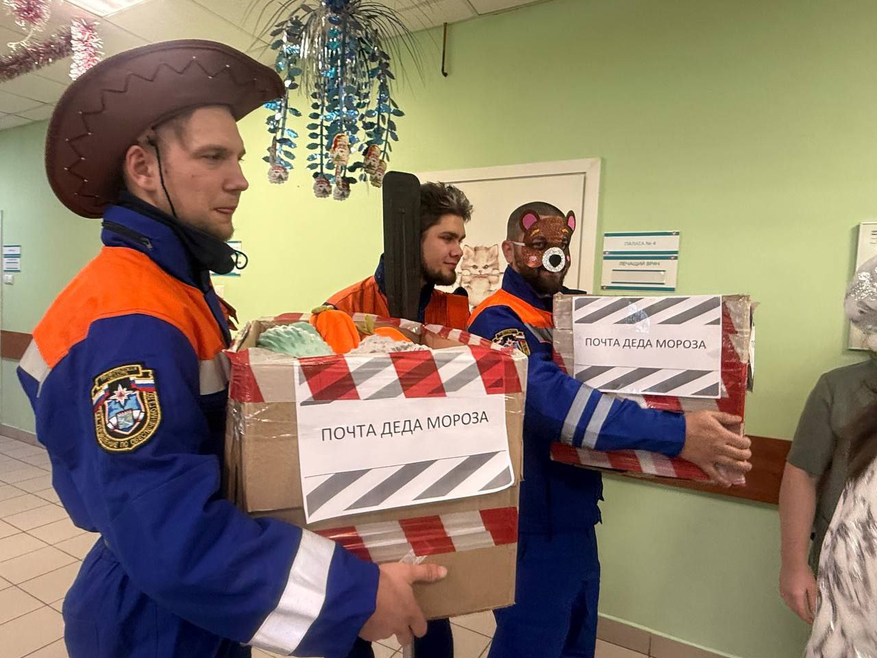 Спасатели поздравляют маленьких пациентов