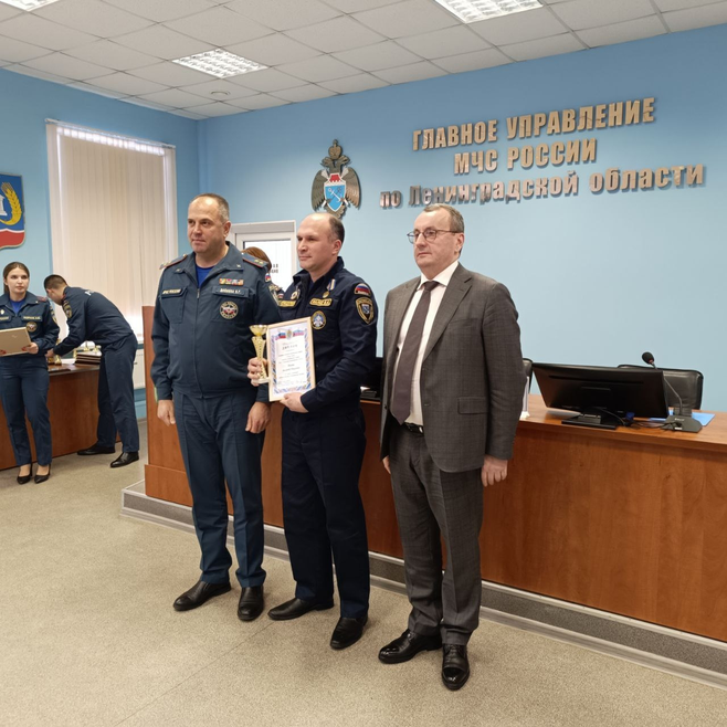В завершении мероприятия прошло награждение сотрудников пожарно-спасательного гарнизона Ленинградской области. По итогам работы за 2025 год лучшим спасателем Ленинградской области стал Валерий Малеш, спасатель поисково-спасательного отряда г. Новая Ладога Аварийно-спасательной службы Ленинградской области.