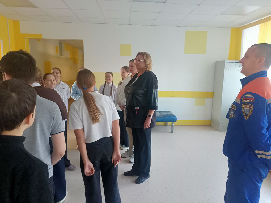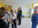 Ситуационные задачи по действиям при возникновении пожара, угрозе захвата здания террористами и обнаружении предмета, похожего на взрывное устройство, выполняли ученики 5 класса. После тренировки спасатели объясняли и показали, как правильно действовать в чрезвычайных обстоятельствах.