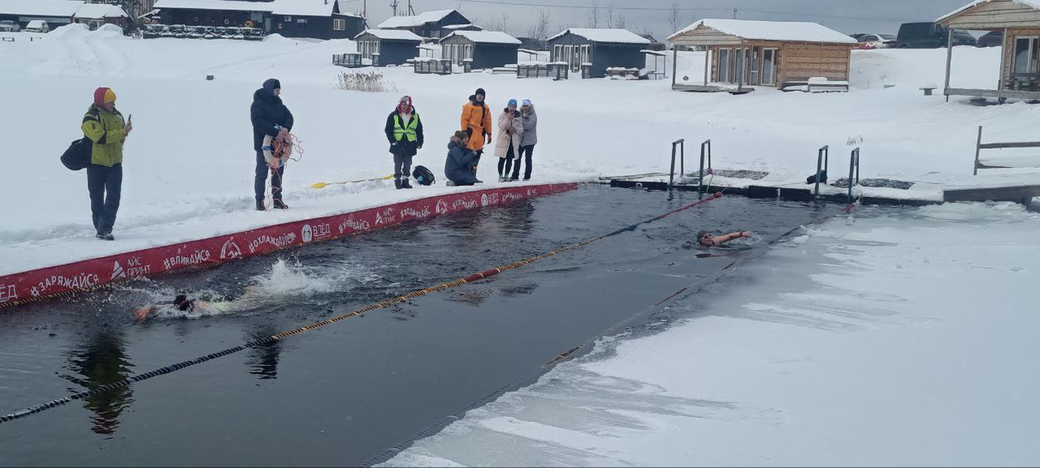 8 февраля на карьере в деревне Мяглово Всеволожского района проходило физкультурно-спортивное мероприятие «Соревнования по зимнему плаванию»