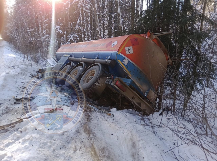Сегодня на автодороге между деревней Доможирово и селом Алеховщина произошло столкновение бензовоза и легкового автомобиля. К месту ДТП выезжала дежурная смена поисково-спасательного отряда г. Лодейное Поле.