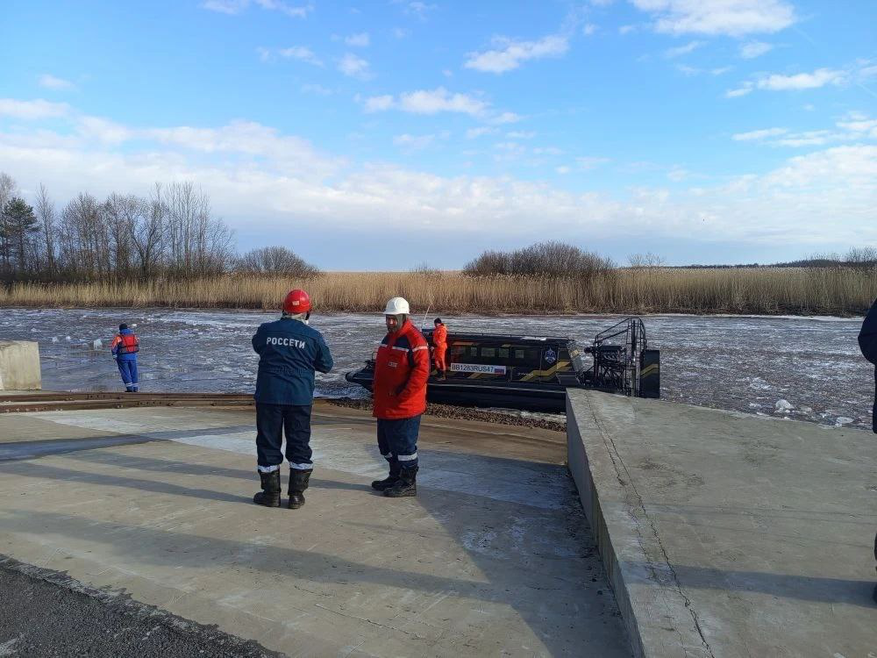 Перед спасателями стояла задача по доставке бригады для выполнения аварийного осмотра и ремонта фидера в период прохождения паводка с помощью судна на воздушной подушке.