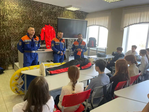 Также спасателями было продемонстрировано специальное оборудование, которое они используют при проведении поисково-спасательных работ на акваториях области. И конечно ученикам представилась возможность почувствовать себя в роли настоящих спасателей, примерев на себя гидрокостюм и подержав специальное оборудование.